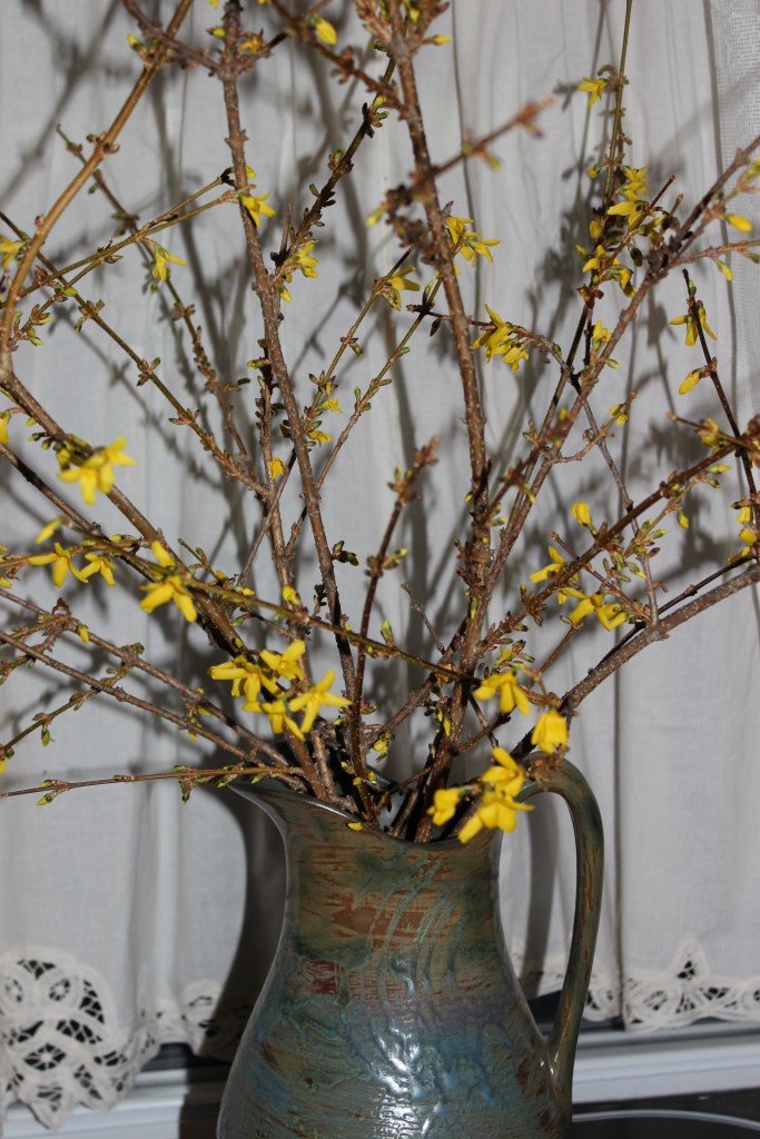 Now comes the hard part. Patience may be a virtue, but it’s not an easy one unless you find the look of the arrangement of branches pleasing just as they are. Even if you do, the first sight of flowers is sure to make your day. It certainly did mine when I found forsythia in bloom in my dining room in December.