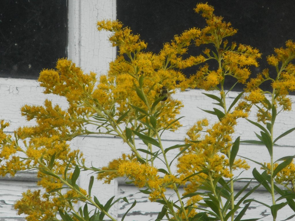 Now that I’ve set that record straight, let me say I love Goldenrod. It’s a beautiful wildflower among so many that bloom around here. There’s little that can compete with those bright yellow plumes (though yellow jewelweed gives it a good try). Goldenrod is a food source for bees and other pollinators: witness the constant buzzing in the garden once those yellow plumes begin to sway in the breeze.