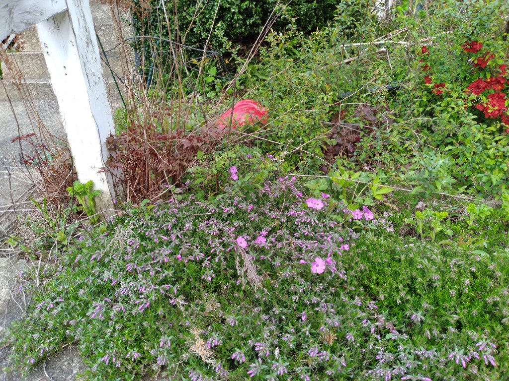 Among my favorite plants are the moss phlox. They’re evergreen, so usually they’re ready to go come spring. This year, I was dismayed to find a lot of brown instead. Much to my relief, warmer temperatures and those famous April showers brought on a flush of growth and they all greened up remarkably well. Not long after, buds appeared and soon they’ll be in full bloom. It’s a truly magnificent show.