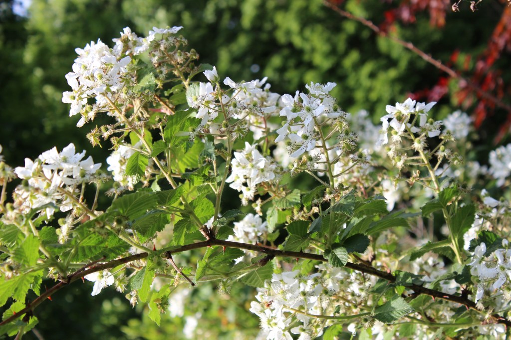 I look out my window at the weeds that seem to grow by leaps and bounds each day in what has been remarkable spring weather, alternating rain with sun and warmth—a near perfect gardening combination. I step into the garden to find the blackberries are in full flower and have drifted far from their preferred location. Likewise, by the path in separate locations around the house two varieties of ajuga have expanded into the path and will need to be removed and relocated. Dividing them provides me with free plants and another item on my to-do list.