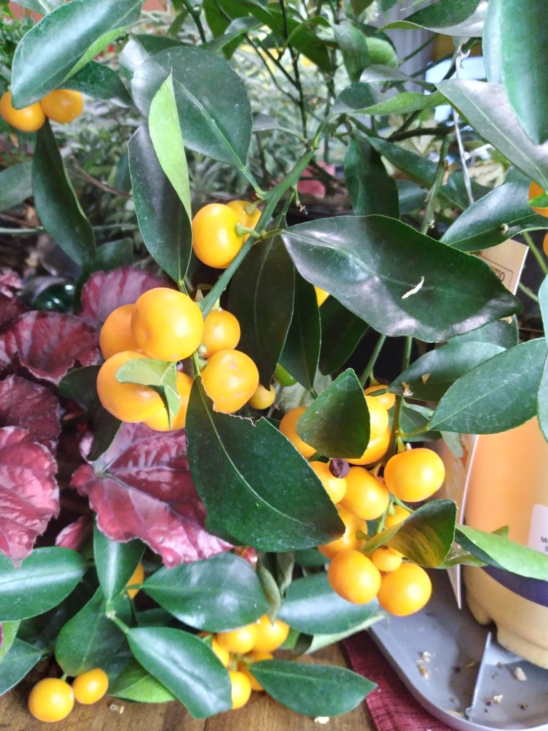 This time of year, my indoor garden keeps me busy just keeping all the plants watered. They’re all exceptionally thirsty in the warm, dry heat from my furnace. I check them daily and enjoy their flowers or foliage or fruit. I’ll admit I’m not quite sure about the sweet/sour taste of the calamondin oranges, but it’s a beautiful plant and makes me smile just inhaling its fragrance.