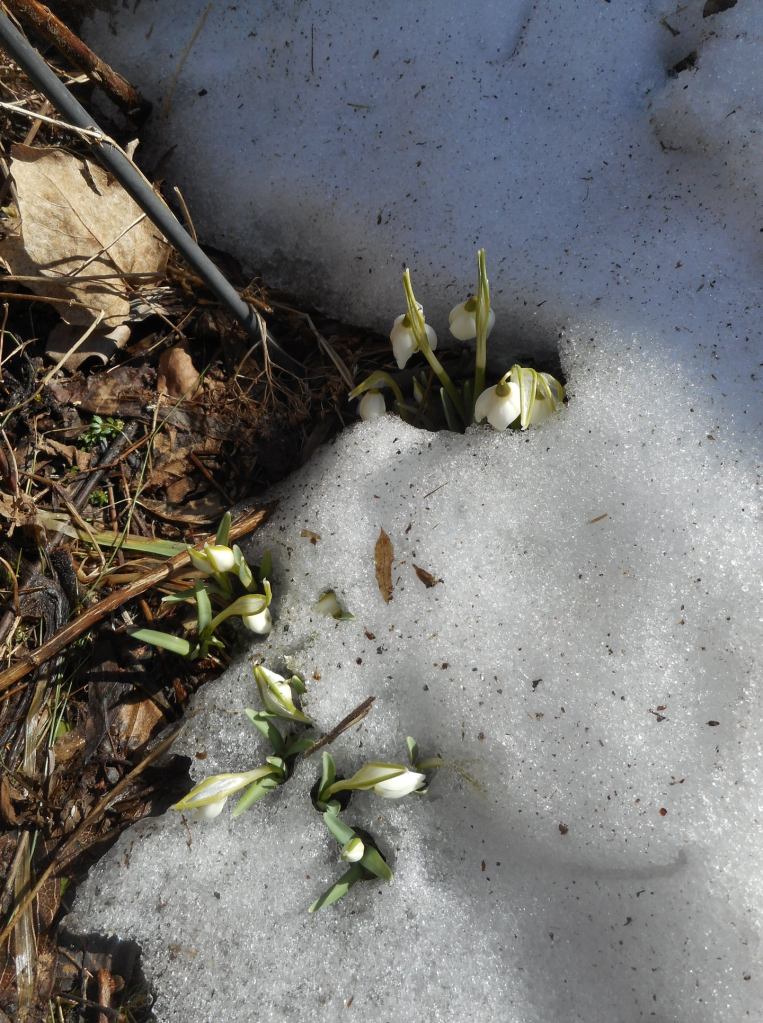 So far, I haven’t seen much evidence of other spring bloomers, though I know under the snow their internals clocks have been ticking and they’re ready to make an appearance. Tomorrow, I’ll take a walk around the yard, as much as the remaining snow allows, and look for new growth. I’m hoping to find daffodil, crocus, snow drops, and winter aconite emerging. If I’m lucky, the snow covering the hellebores will have melted enough for me to see them. Last year’s faded flowers will likely still be there, waiting for new shoots to replace them.